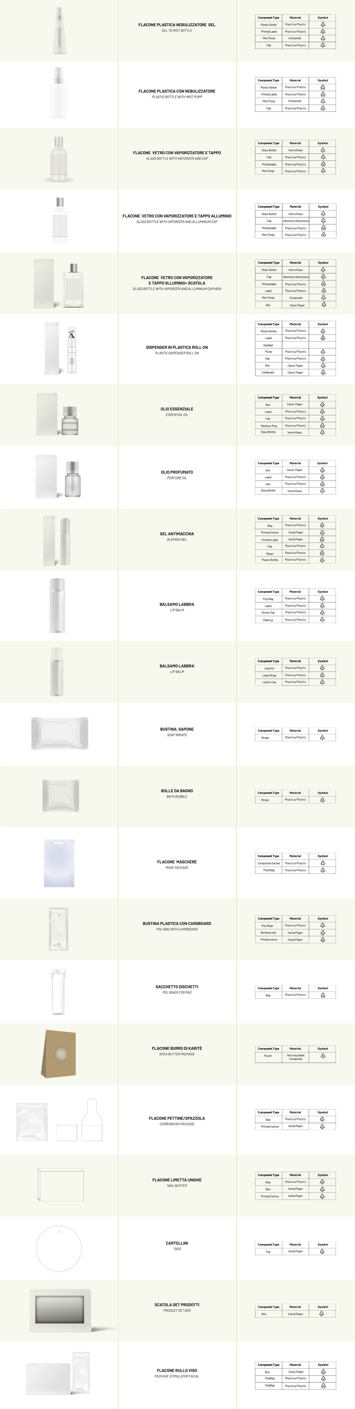 Conformément au Décret italien n°116/2020, nous avons rassemblé sur cette page toutes les instructions pour le tri correct des déchets d'emballage de nos produits.